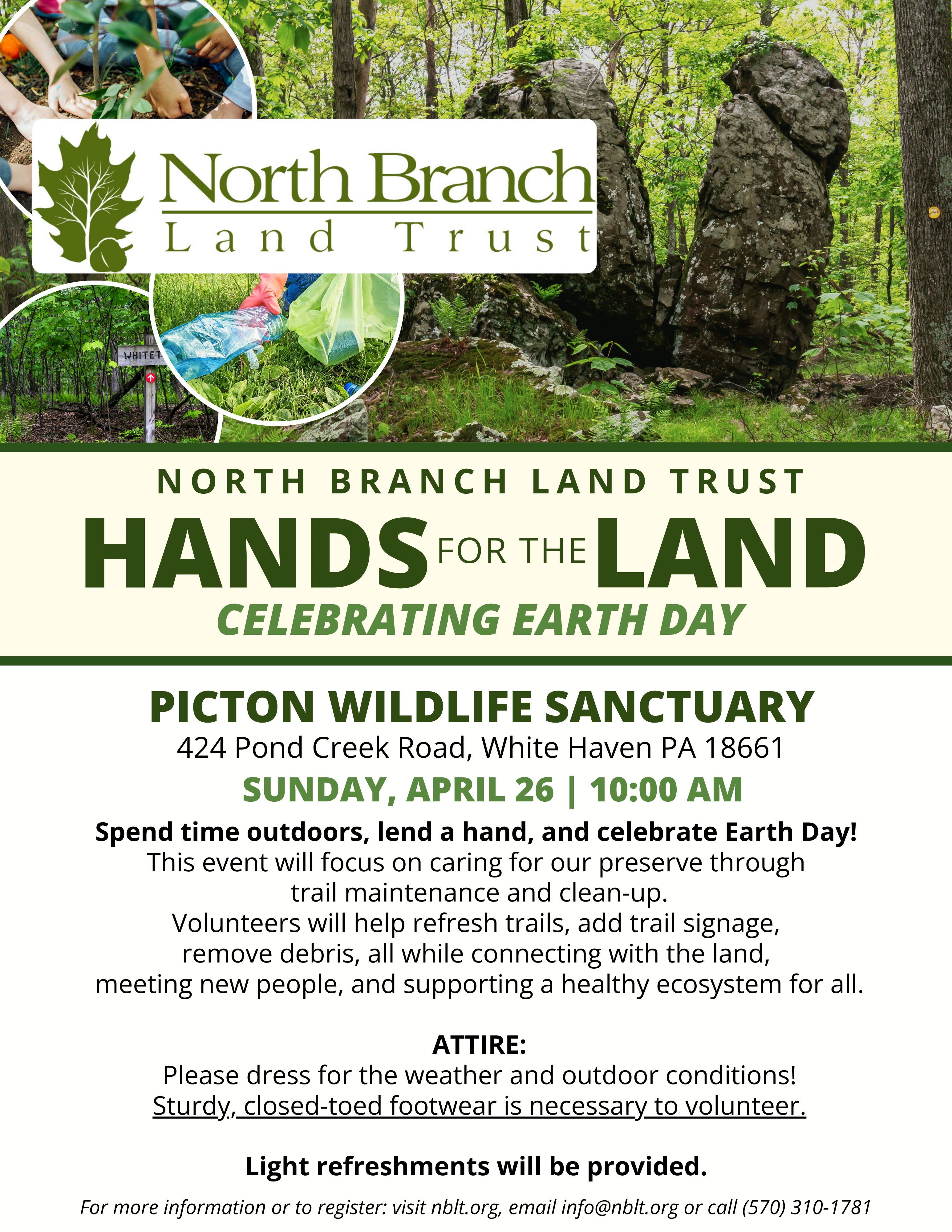 Join North Branch Land Trust in celebration of the commitment to conserving Northeastern Pennsylvania’s precious lands and waters on Wednesday, March 25, 2026.