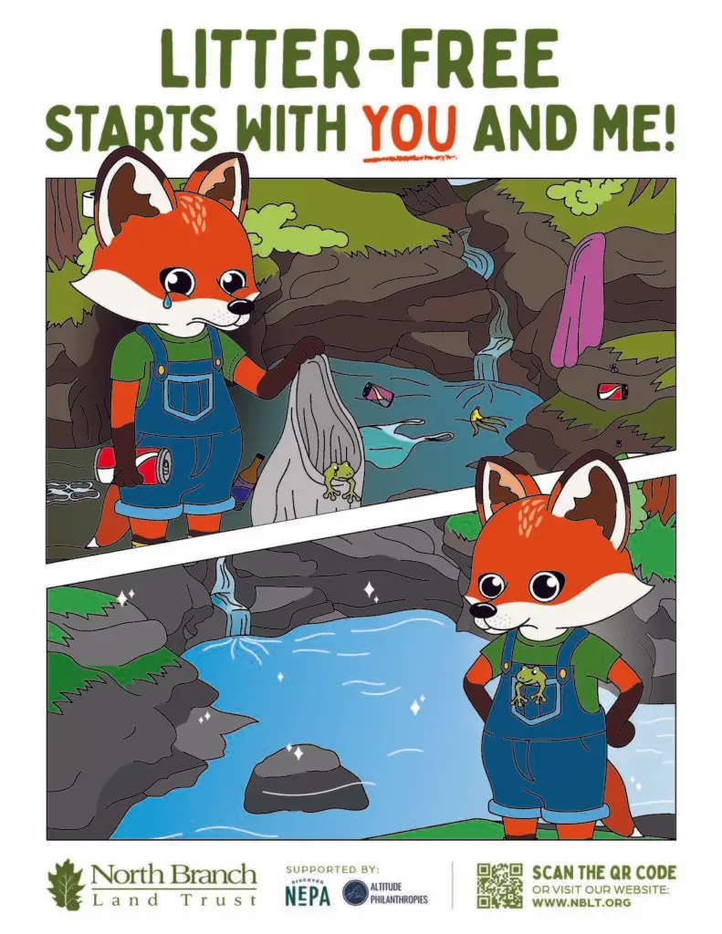 About two years ago, one of the Land Trust’s friends, Ramah Hackett and The Altitude Foundation, started a discussion with North Branch Land Trust staff about developing actionable steps to reach the younger generation about the conservation and habitat dangers of littering. From Ramah’s passion and idea sprang a project that is on the cusp of launching in local schools and centers of learning. From the perspective of North Branch Land Trust, this is a stewardship message that we all can agree needs to be reinforced. Litter is not just a visual nuisance, it harms fish, birds and other living things that share this place with us.