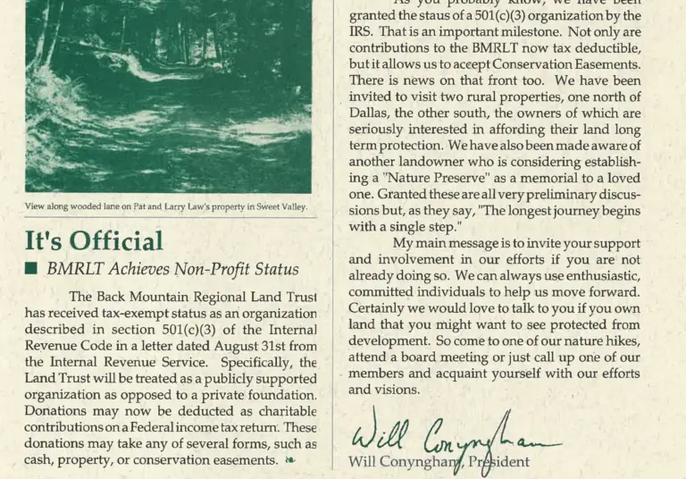 1994 - The Back Mountain Regional Land Trust is approved as a nonprofit organization.